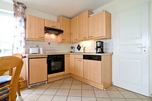Die moderne Küche bietet auch für gemeinsames Kochen ausreichend Platz. Natürlich mit allen Annehmlichkeiten wie Geschirrspüler & Co.
