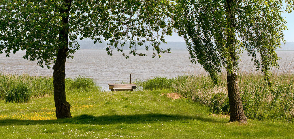 Geschmackvoll eingerichtetes Haus für max. 5 Personen. Außenseite eines 4er Reihenhauses mit Südterrasse zum Garten. Wassergrundstück. 3000qm in traumhafter ruhiger Lage mit herrlichem Blick und direktem Zugang zum Bodden.