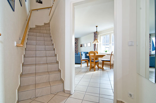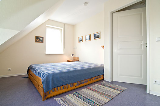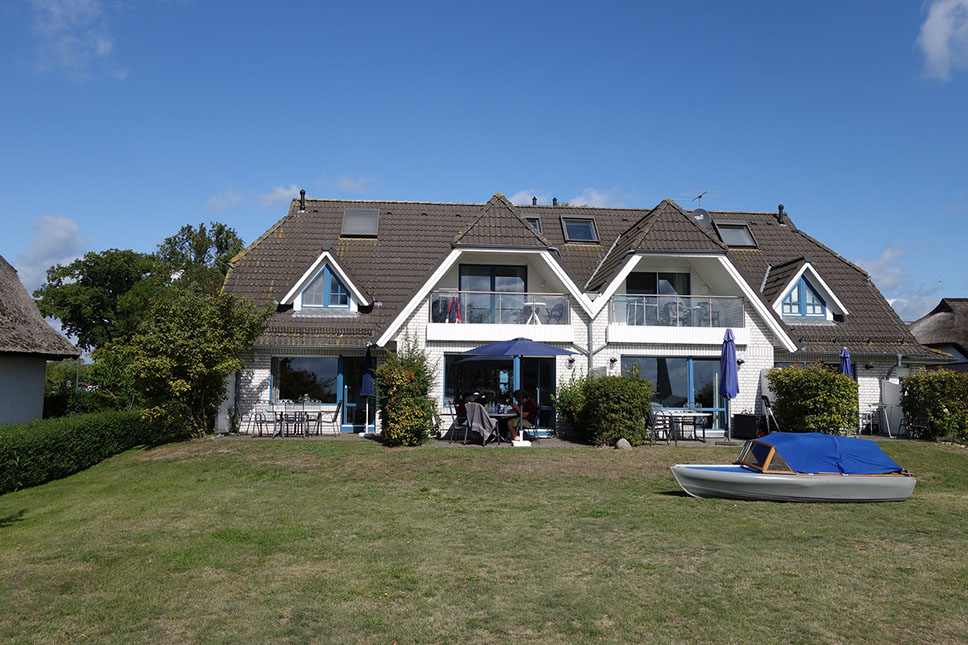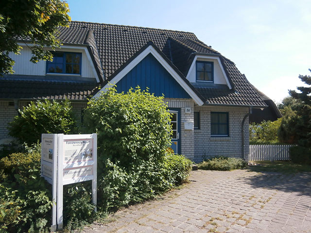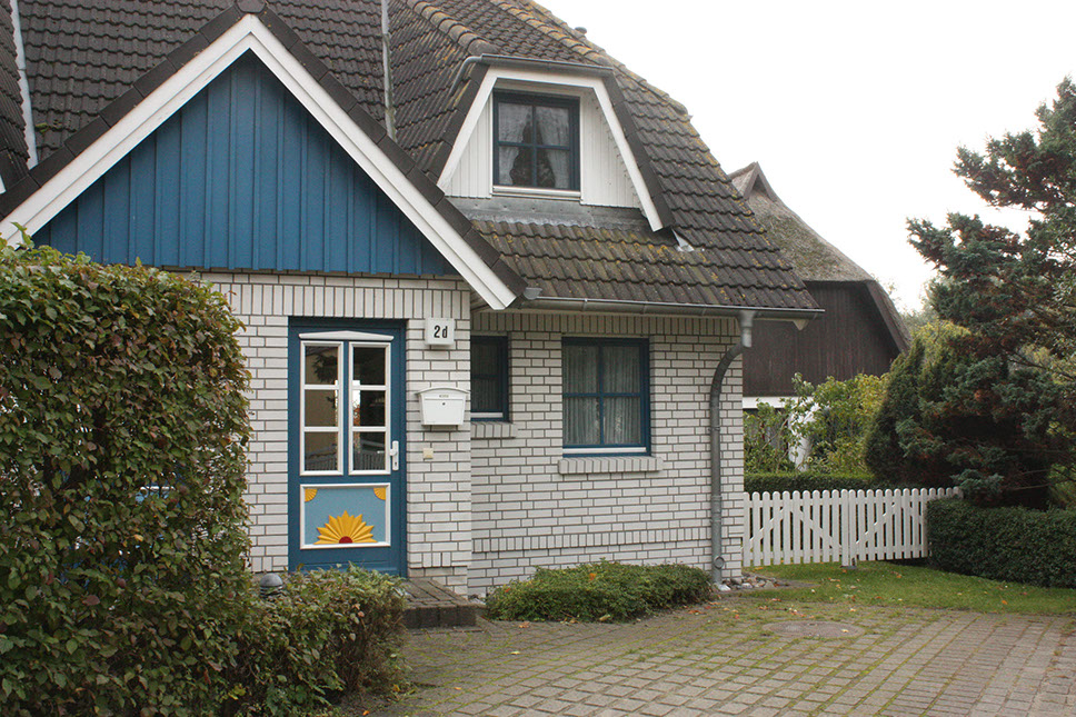 Sie parken direkt am Haus und öffnen die Haustür mit der für Born typischen Holzmalerei.