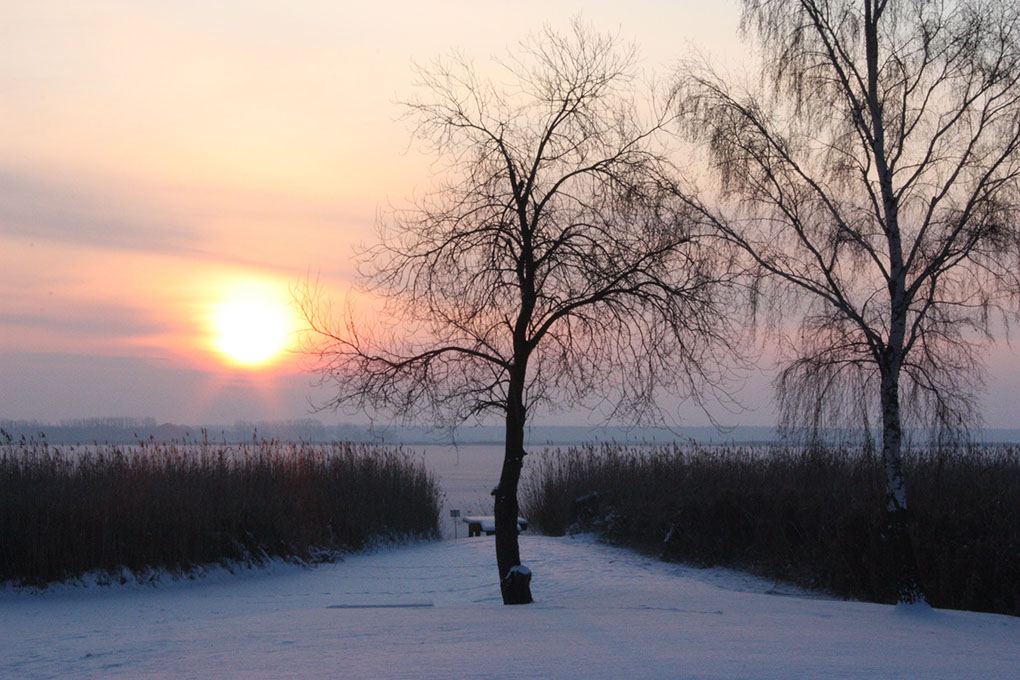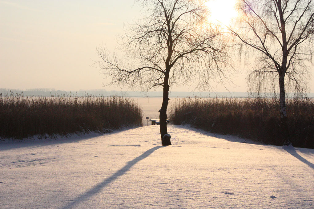 Seesteg zum Bodden im Winter.